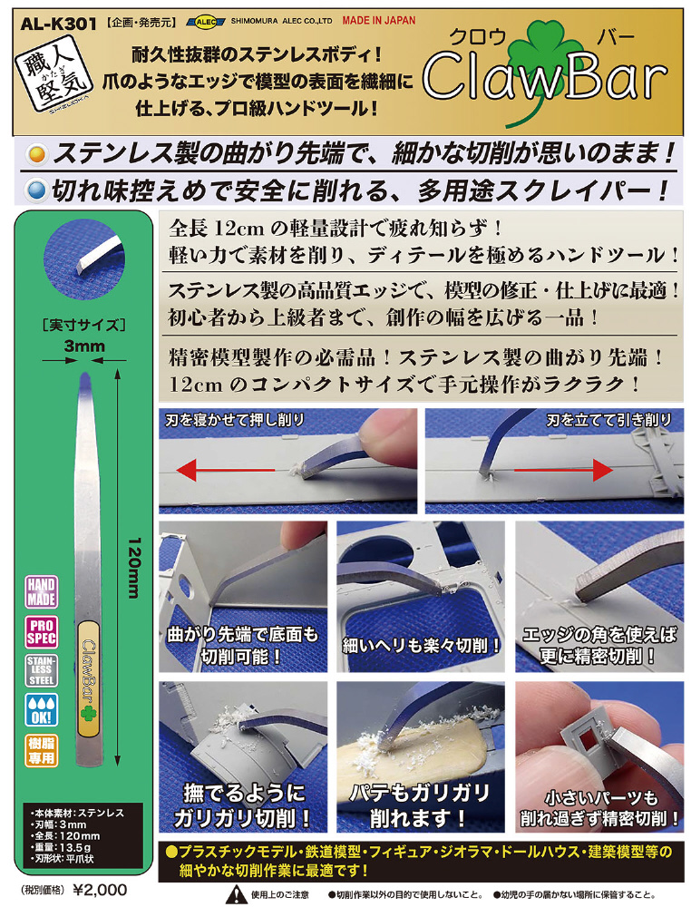 | 商品名 | 【在庫限り】 職人堅気 ステンレス製切削ツール「クロウバー」 シモムラアレック |