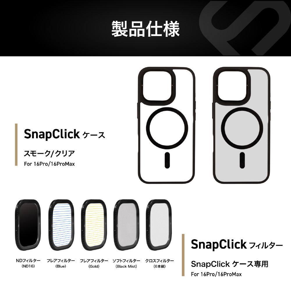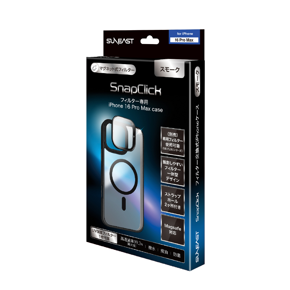 | 商品名 | SnapClick マグネット型フィルター交換式 ケース iPhone 16 Pro Max 用 スモーク SE-KSDIH0AF |