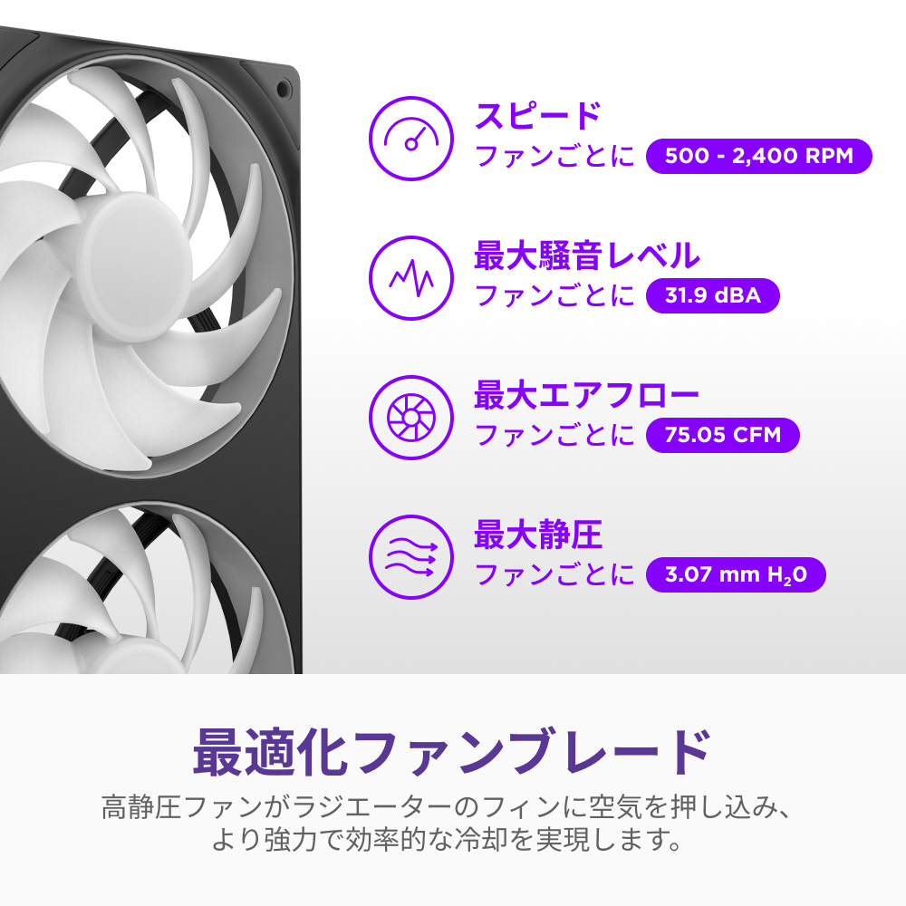NZXT「Kraken Core RGB」は、シングルフレーム構造のRGBファンを搭載した液体CPUクーラーです。