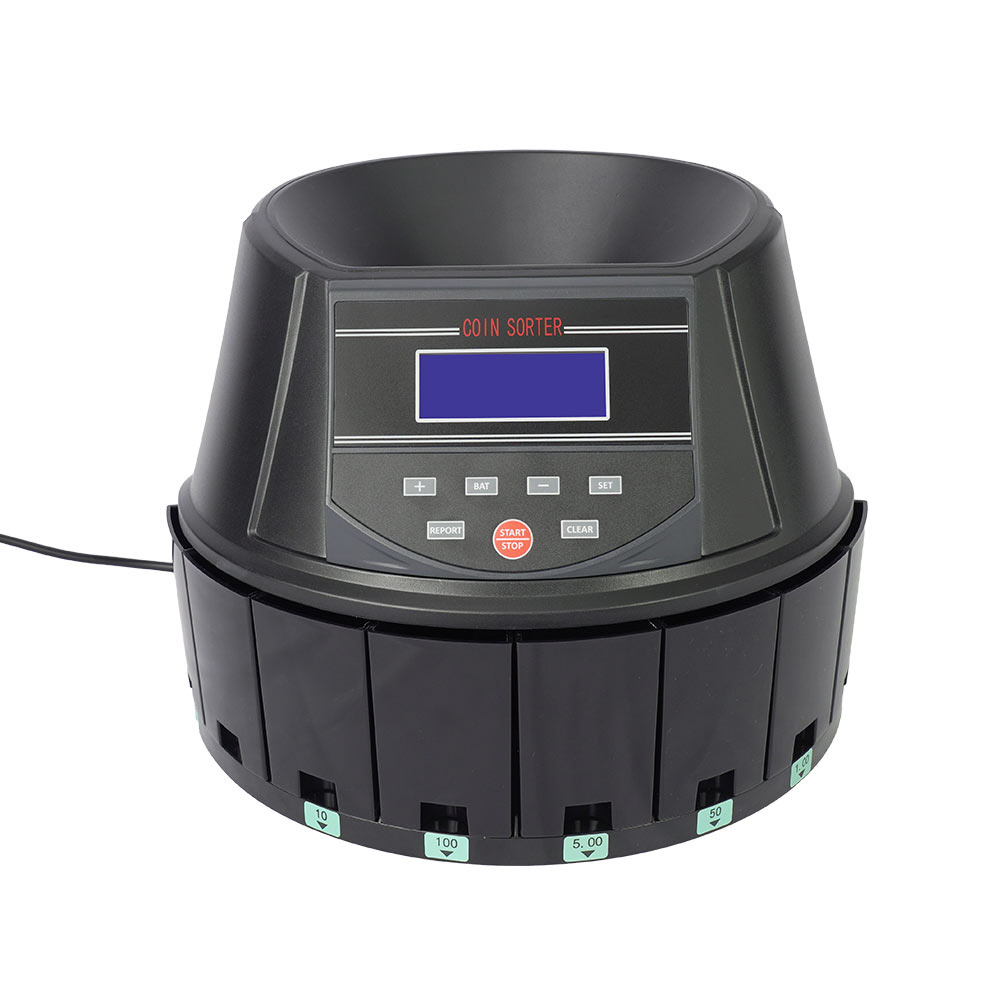 新硬貨対応、硬貨を投入するだけで自動で選別、計算を行う電動コインカウンター
