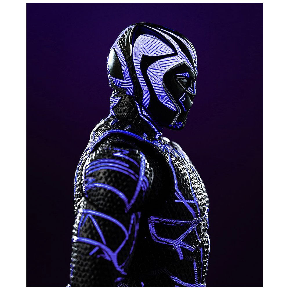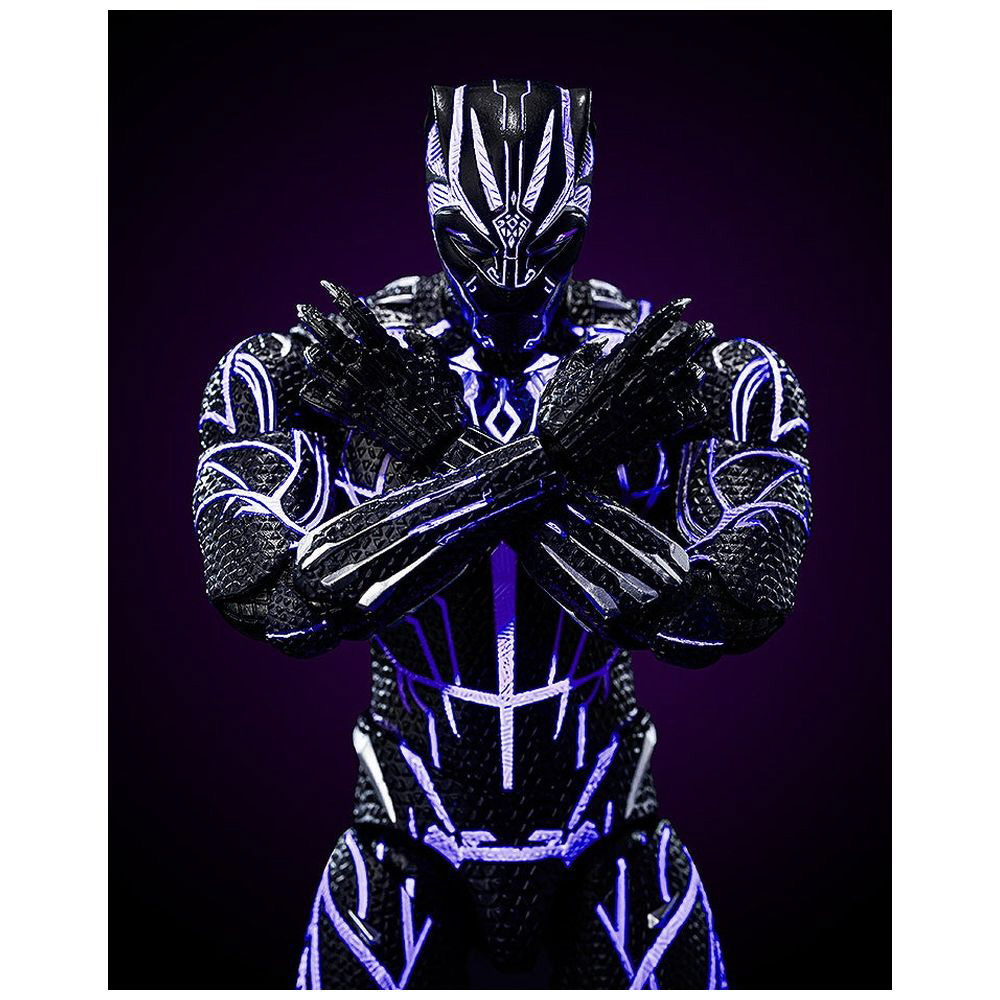 全身にわたる細部へのこだわりが、ワカンダの王の姿を忠実に再現しています。
