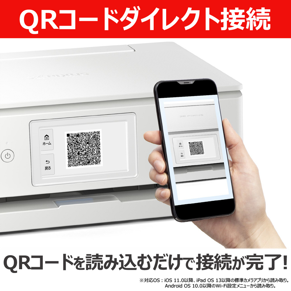 プリンターの液晶画面にダイレクト接続用のQRコードを表示。読み込むだけで、SSIDやパスワードを入力することなく接続設定が完了します。