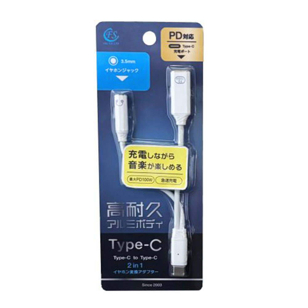 | 商品名 | 2in1 3.5mmイヤホン変換アダブター ホワイト FS-C35DACPD-WH |