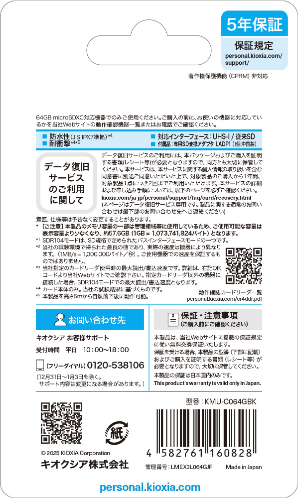 【復旧サービス付き】SDXC microSDカード アクションカメラ・スマートフォン・ゲーム機におすすめの高速タイプ EXCERIA(エクセリア) KMU-C064GBK [Class10 /64GB]