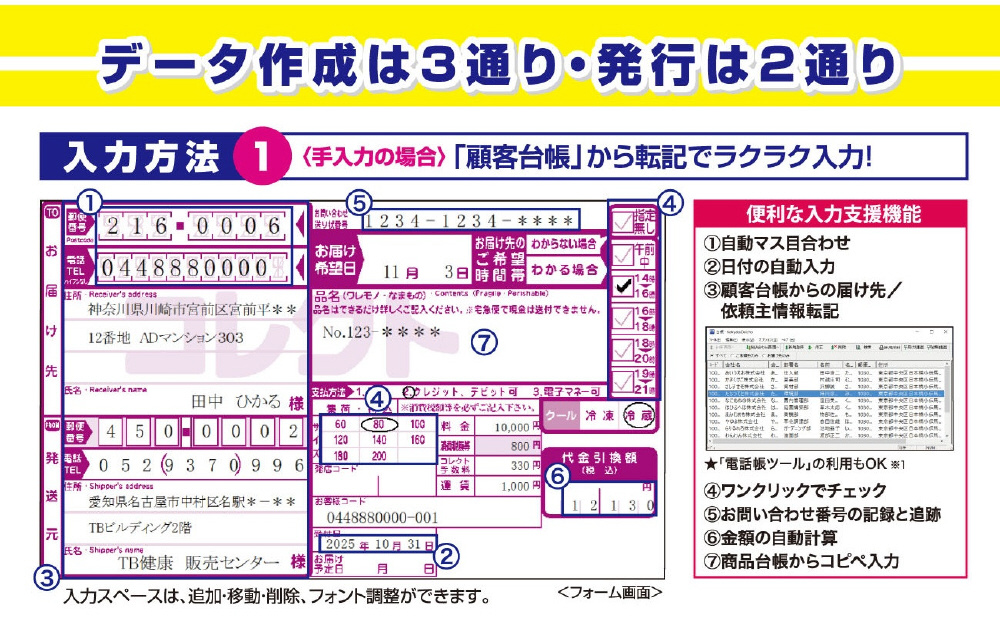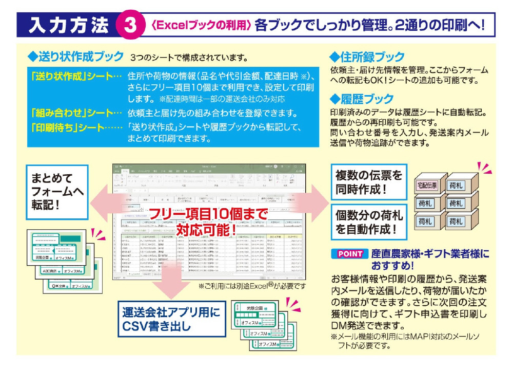 3.「送り状作成Excelブック」でしっかり管理-住所、品名や日時の指定、フリー項目の活用