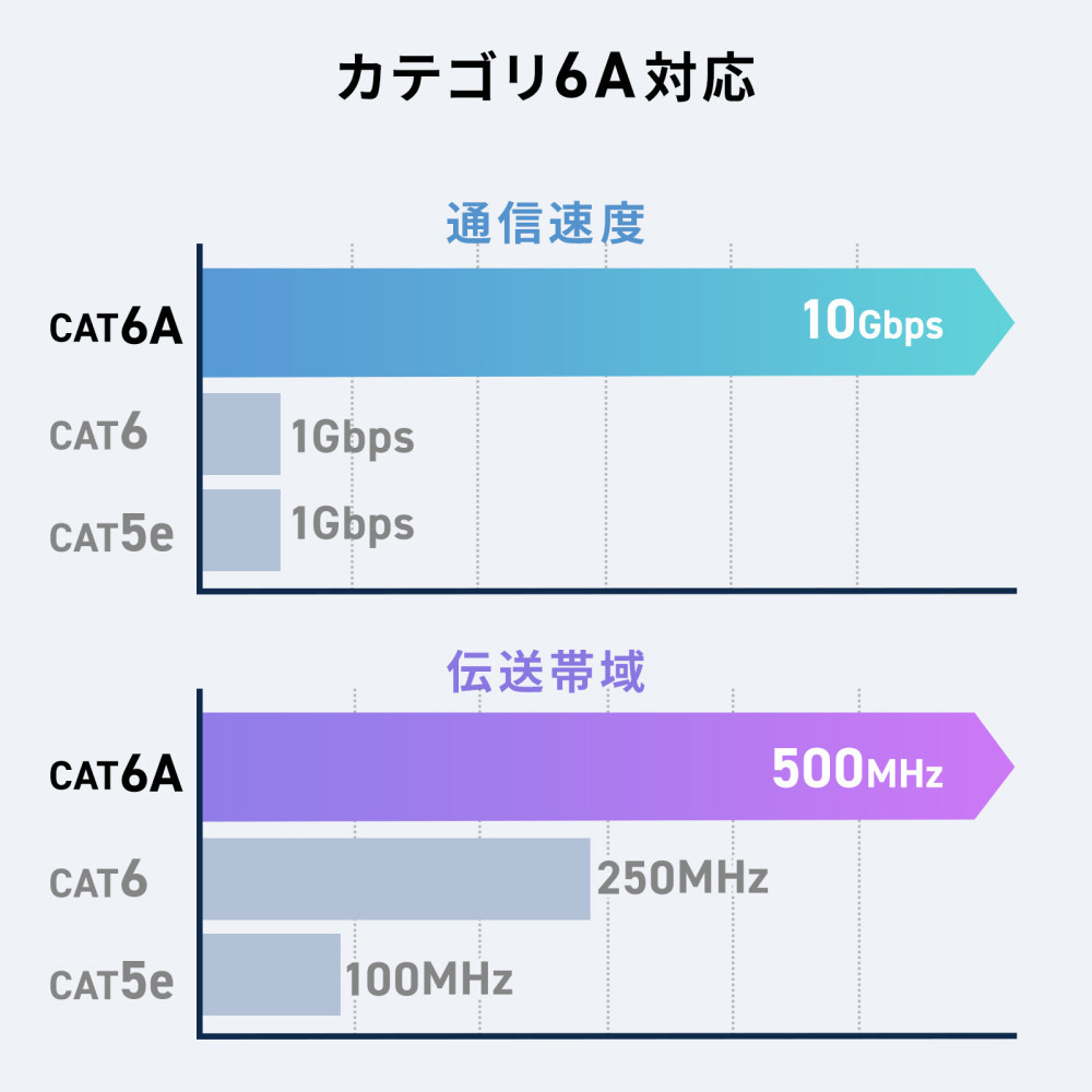 ■カテゴリ6A対応で、ギガビットイーサネット環境でも安定した高速通信を実現します。