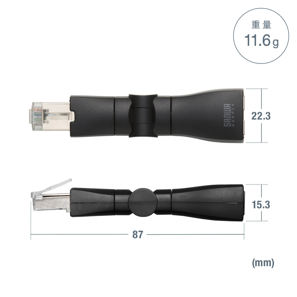 | 商品名 | RJ-45 回転式アダプタ(STP) PoE対応 ブラック ADT-RJ6A-3D [カテゴリー6A] |
