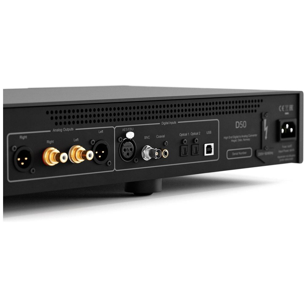 電気ノイズを徹底して排除するために、D50は2つの低ノイズトロイダルトランスを採用しています。 一方はノイズの多いデジタル処理とスタンバイ機能に電力を供給し、もう一方は敏感なアナログおよびデジタルコンポーネント専用です。 両方のトランスは厚い鋼板でシールドされ、その出力もフィルタリングされているため、D50は最も純粋な電力で動作し、その性能が飛躍することを可能にします。
