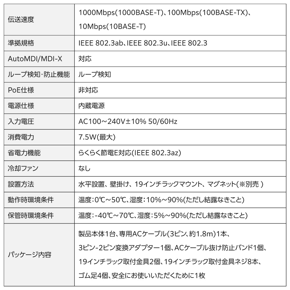 最大消費電力が従来機種(EHC-G16MN2-HW)より33%ダウンの省エネモデル。ファンレスで耐熱50℃に対応し、ループ検知機能も搭載したGiga対応、電源内蔵のメタル筐体16ポートハブです。