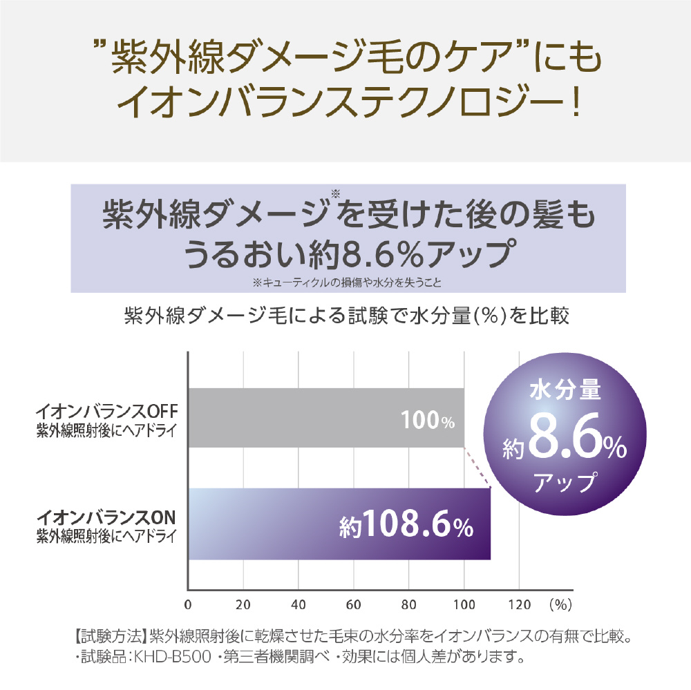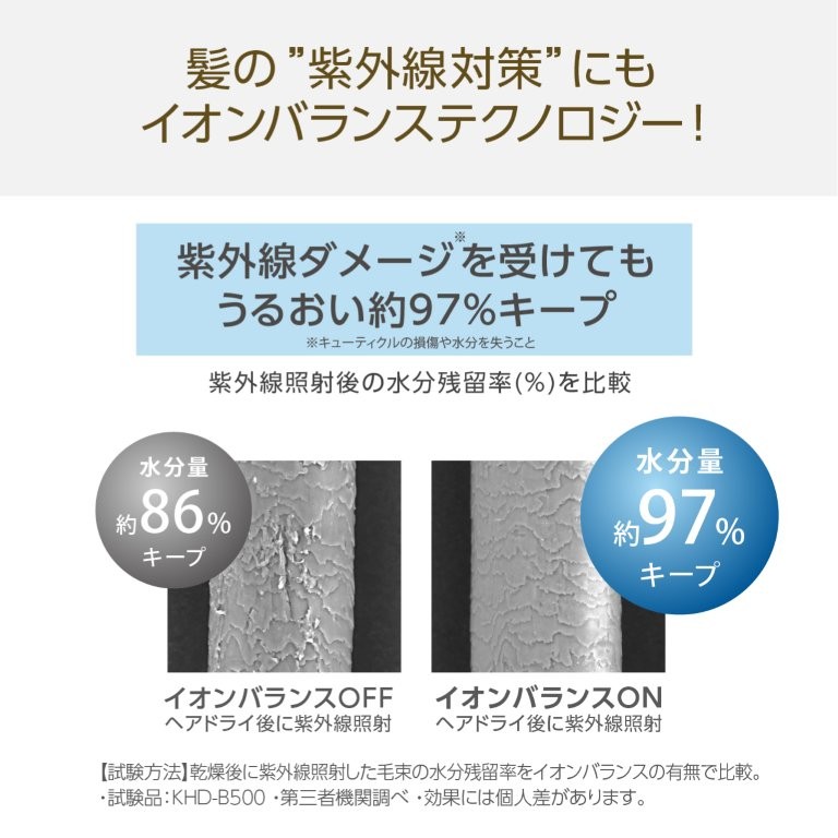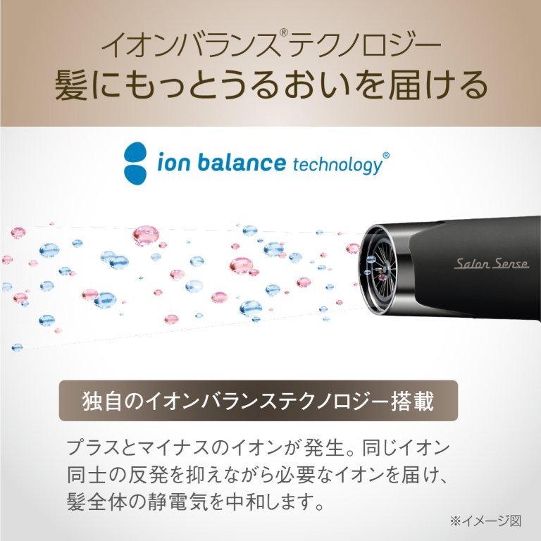イオンバランステクノロジー搭載で静電気を中和し髪をより美しく
