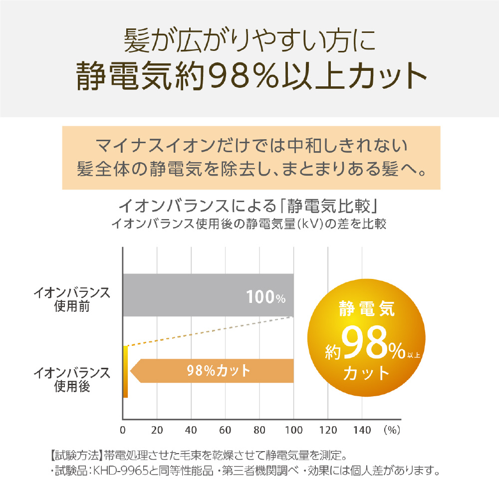 イオンバランステクノロジー搭載で静電気を中和し髪をより美しく