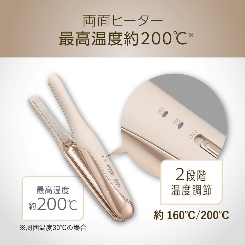 充電式コードレスタイプ(本体側USB Type-C充電対応)、2段階温度設定(約160/200℃)