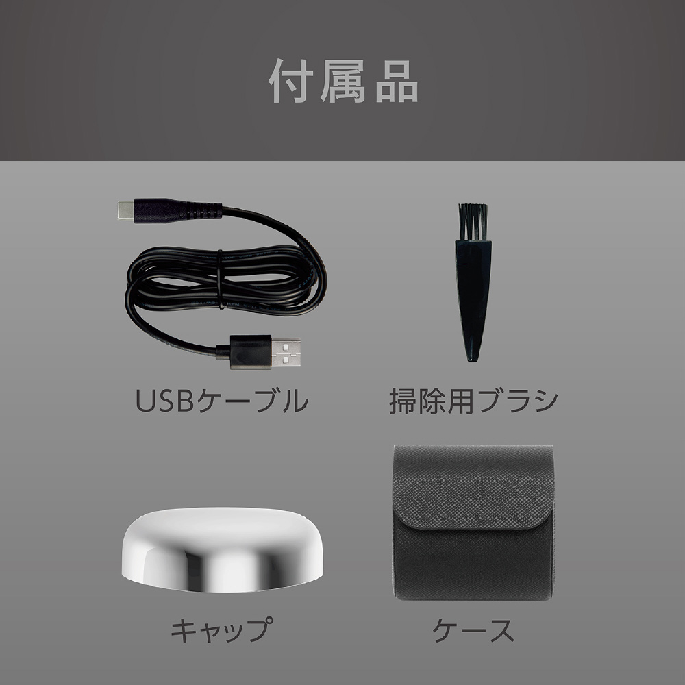 携帯や収納に便利な専用キャップとケース、お手入れに便利な掃除用ブラシ付き