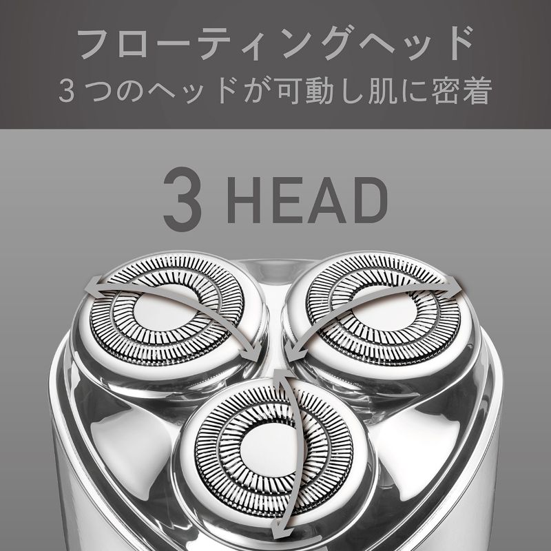 3つのヘッドが可動し肌に密着するフローティングヘッド