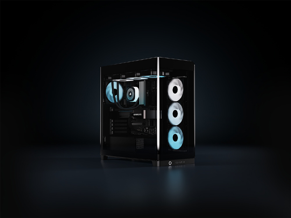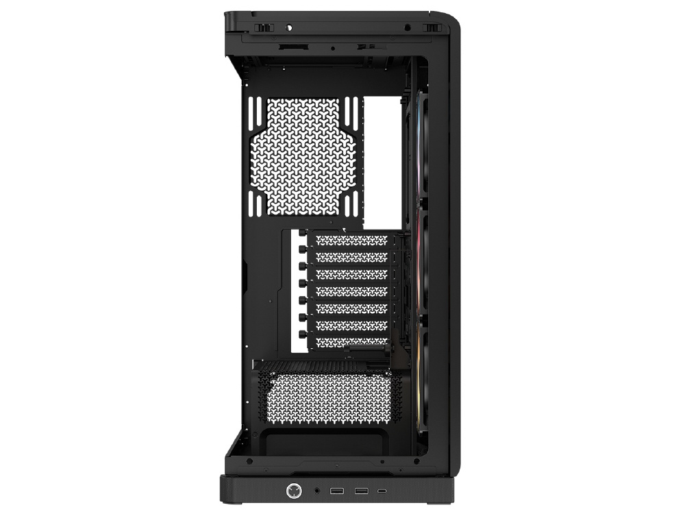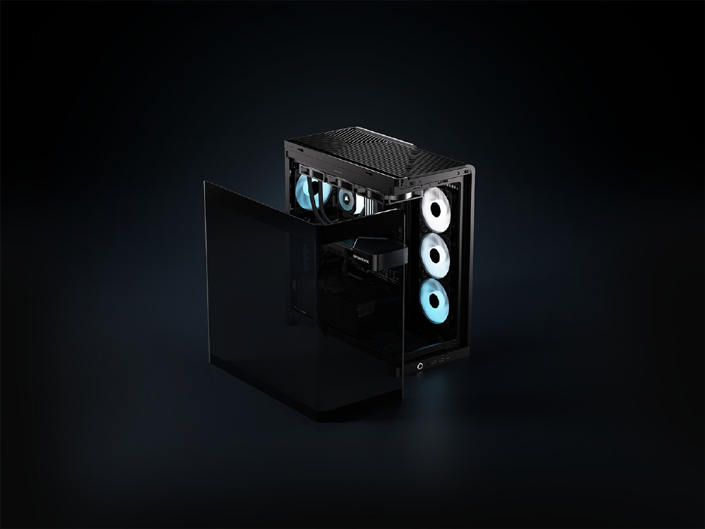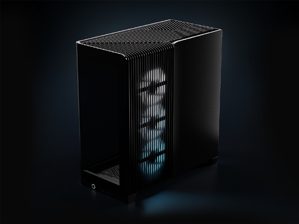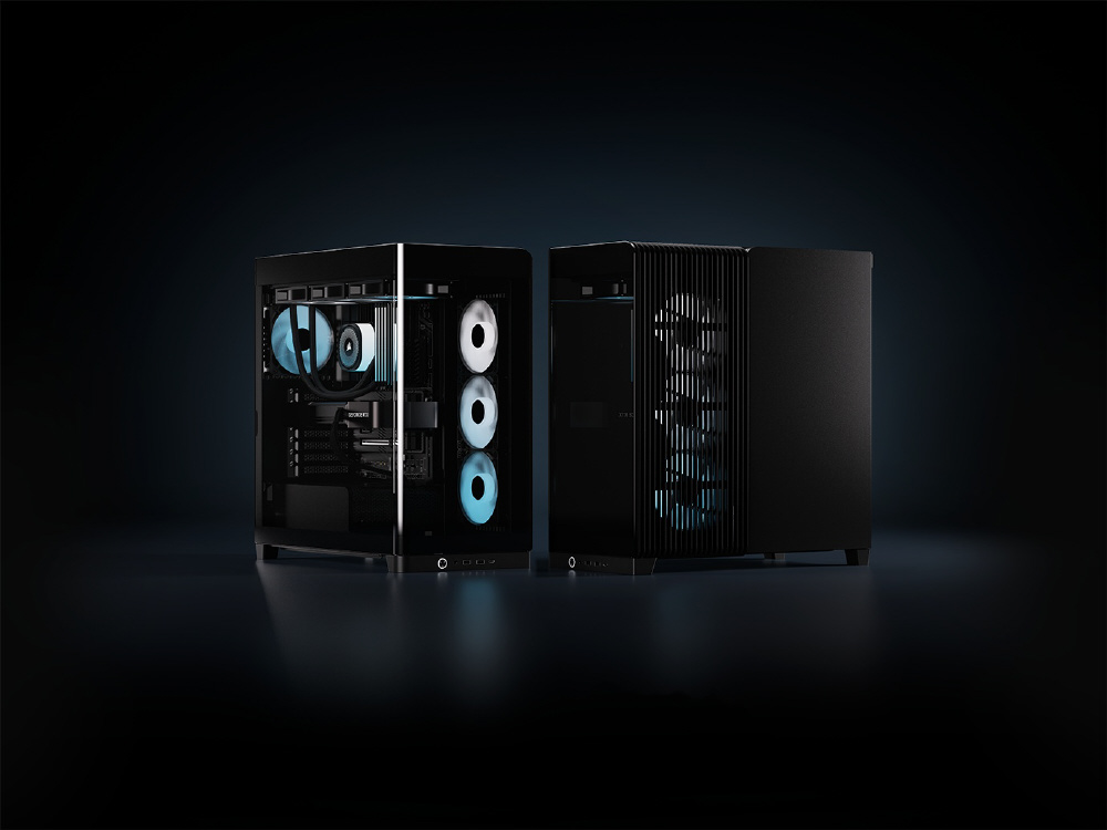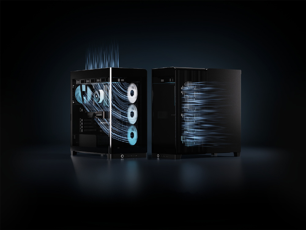 曲面強化ガラスパネルとInfiniRailシステムを採用。リバースローター設計のARGBファンを備えるミドルタワー型PCケース
