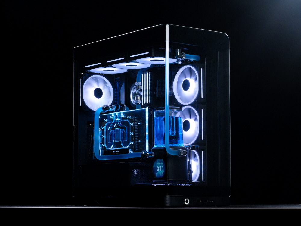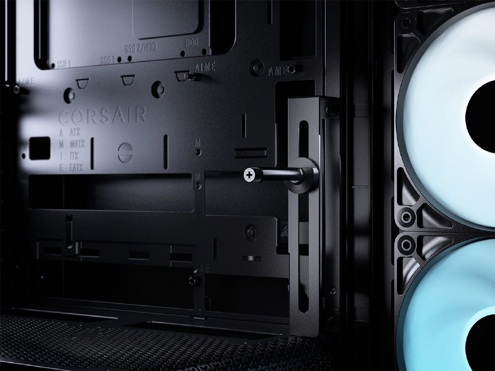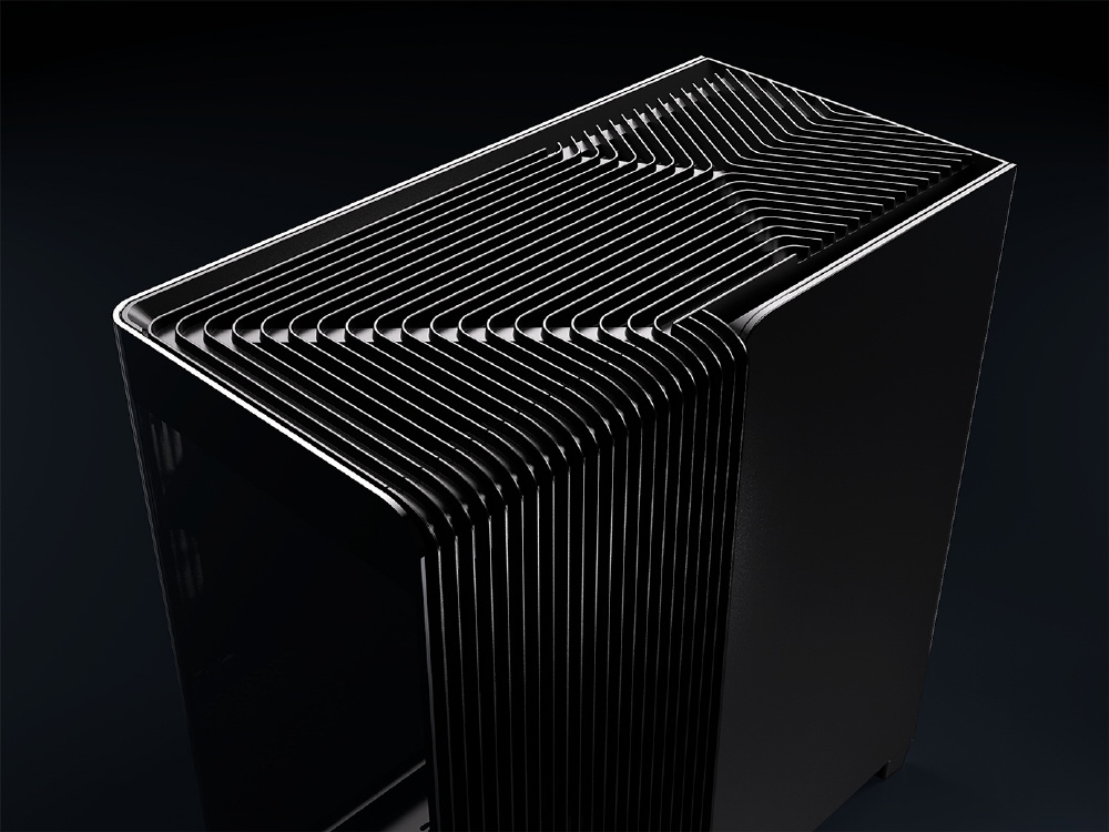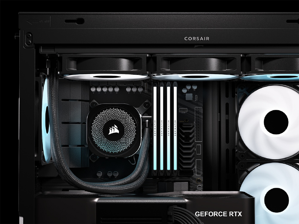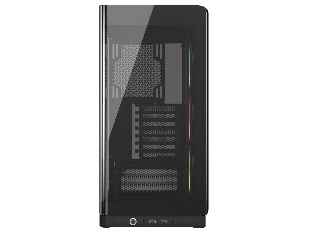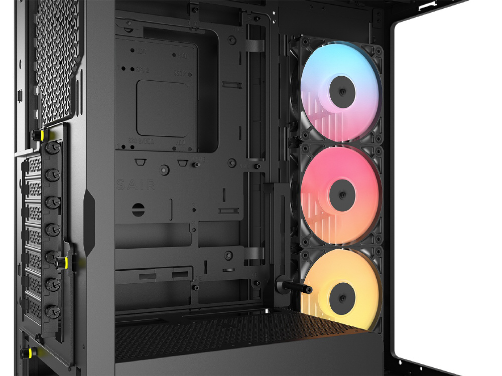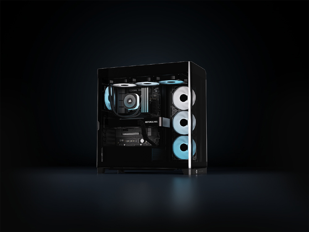 曲面強化ガラスパネルとInfiniRailシステムを採用。リバースローター設計のARGBファンを備えるミドルタワー型PCケース