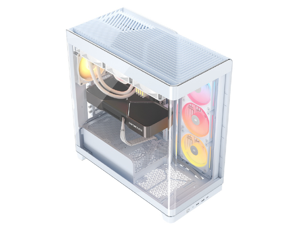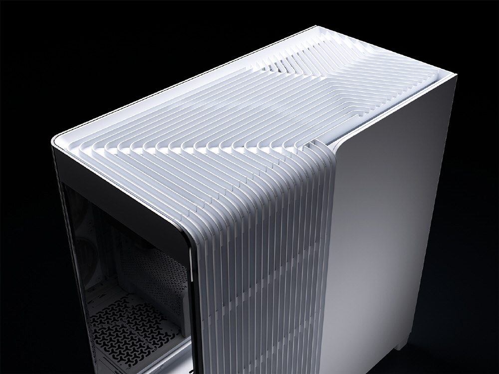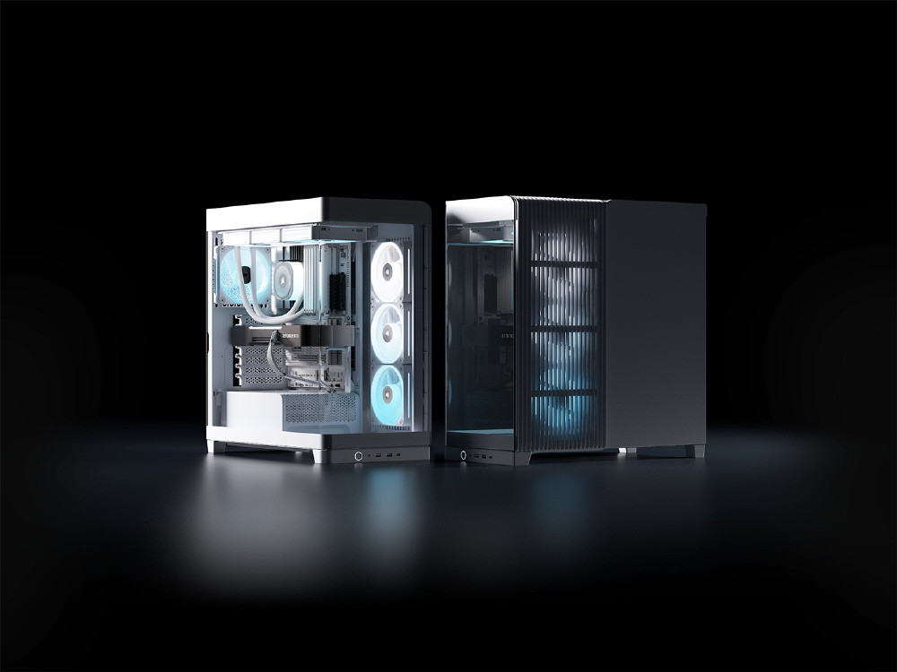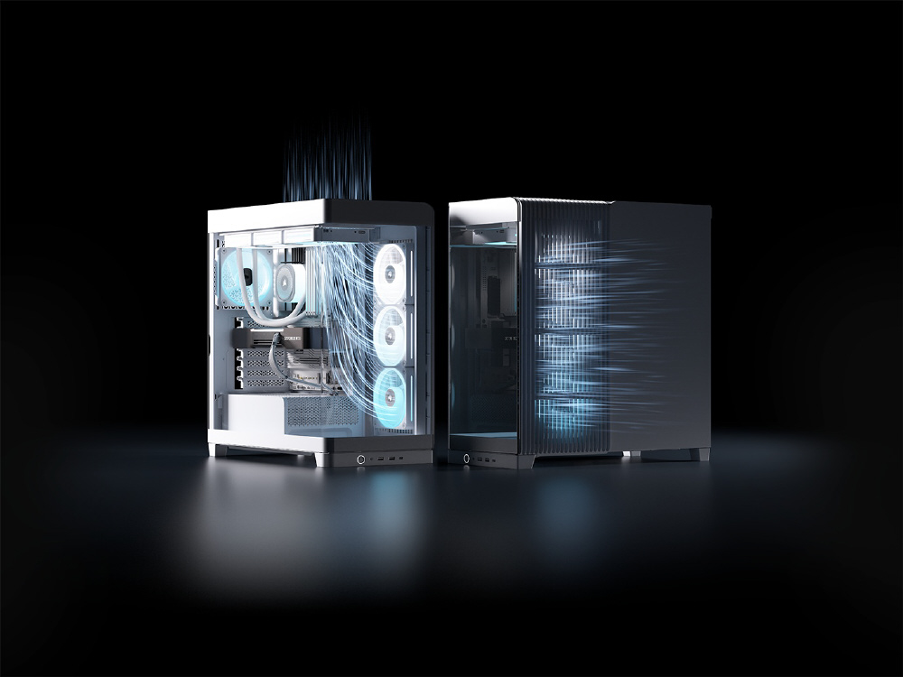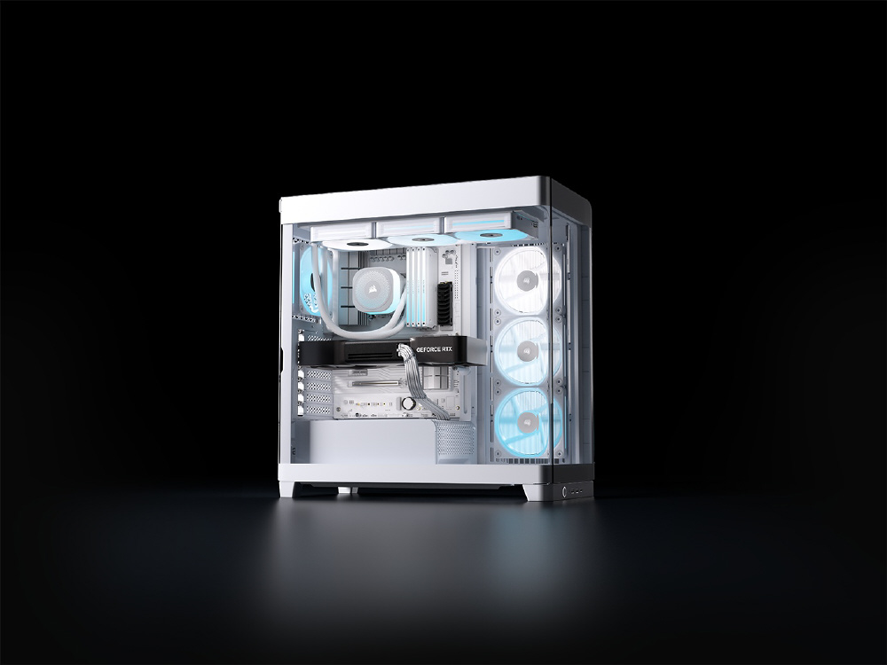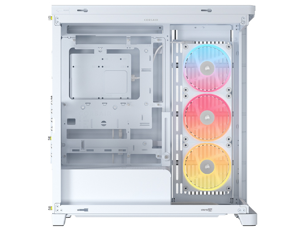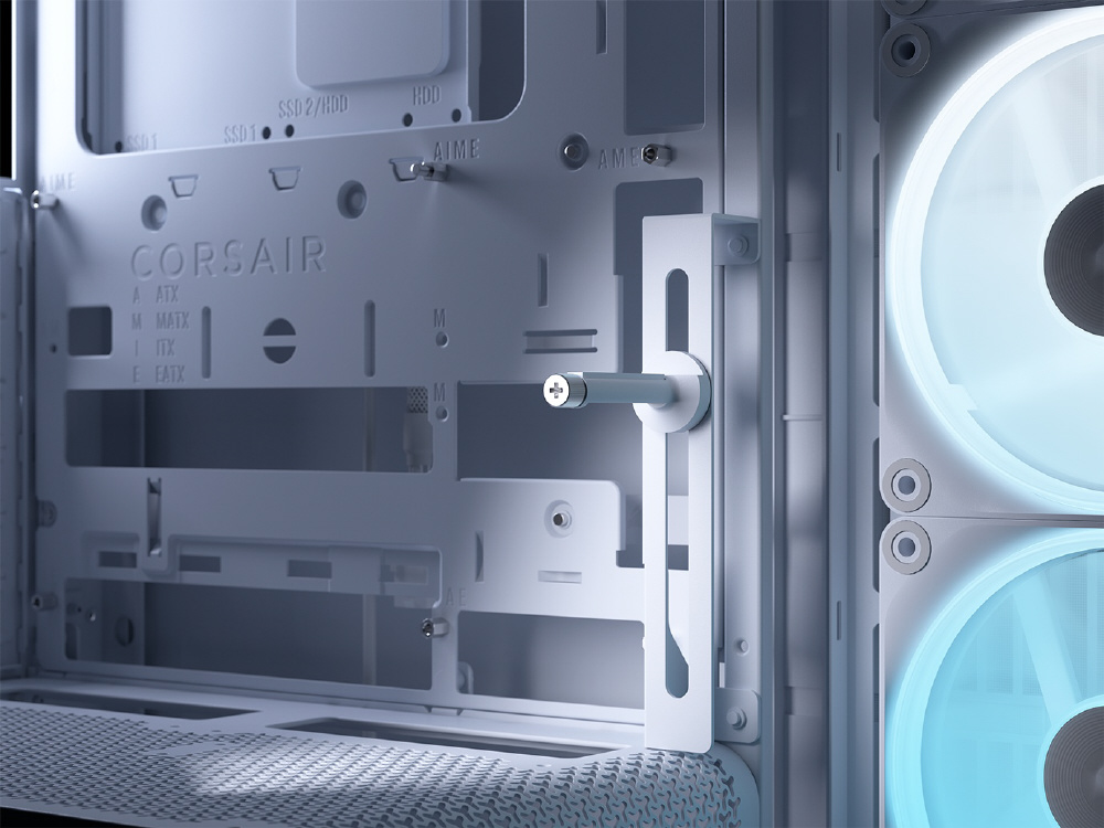 曲面強化ガラスパネルとInfiniRailシステムを採用。リバースローター設計のiCUE LINKファンを備えるミドルタワー型PCケース