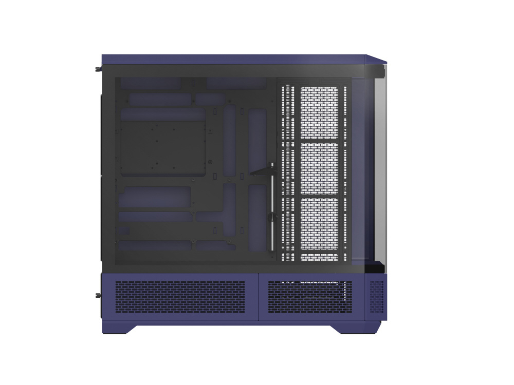 4枚の強化ガラスパネルを採用したピラーレスデザイン。背面コネクタ設計のマザーボードに対応したフルタワー型PCケース