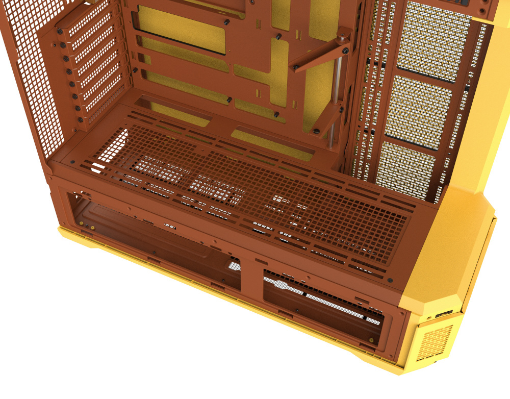 4枚の強化ガラスパネルを採用したピラーレスデザイン。背面コネクタ設計のマザーボードに対応したフルタワー型PCケース