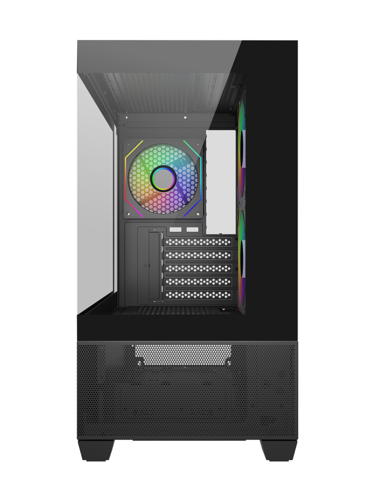 アドレサブルRGBファンを備えたピラーレスデザインを採用。コンパクトながら冷却性能とコストパフォーマンスに優れたミニタワー型PCケース