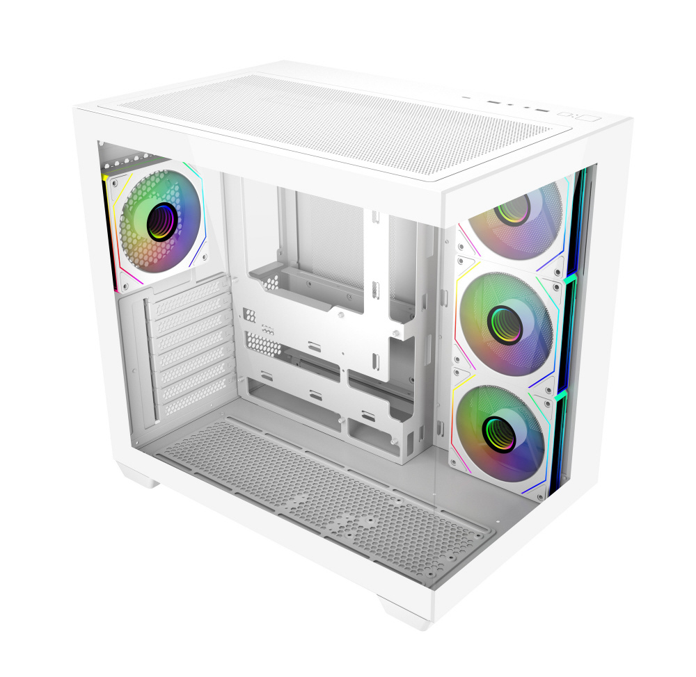 アドレサブルRGBファンを備えたピラーレスデザインを採用。デュアルチャンバー構造により効率的な冷却を実現するミドルタワー型PCケース