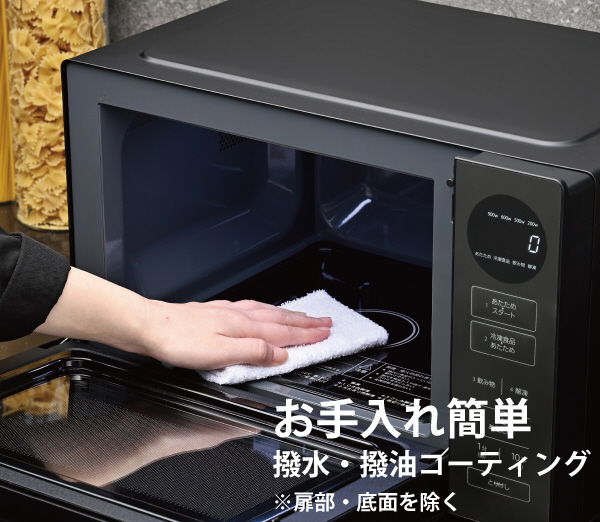 さらに庫内には撥水・撥油コーティングを施しており、調理中に飛び散った水分や油汚れもこびりつきにくい仕様。