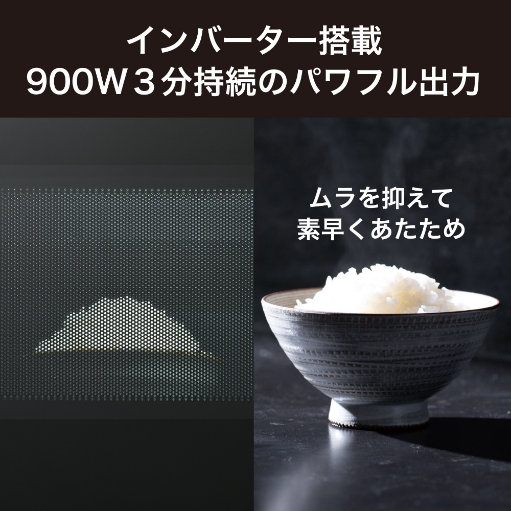 インバーター搭載だから最大900W3分持続※のパワフルな出力を実現。ごはんもおかずも素早くムラを抑えて自動あたためすることができます。