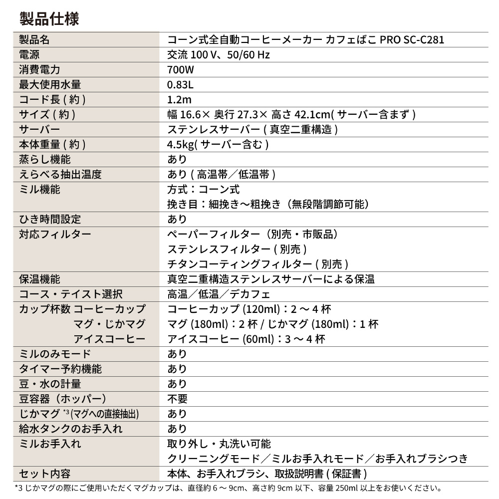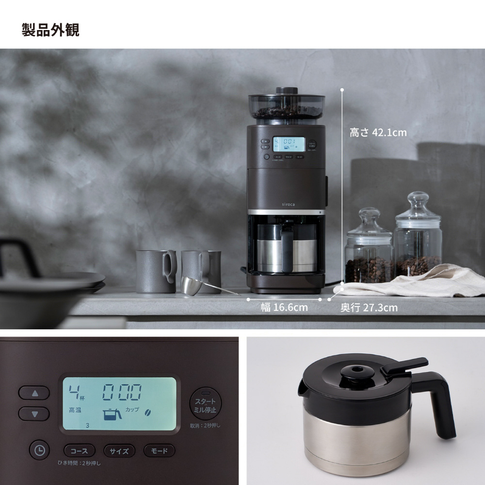 | 商品名 | コーン式全自動コーヒーメーカー カフェばこ PRO siroca ダークブラウン SC-C281TD [全自動 /ミル付き] |