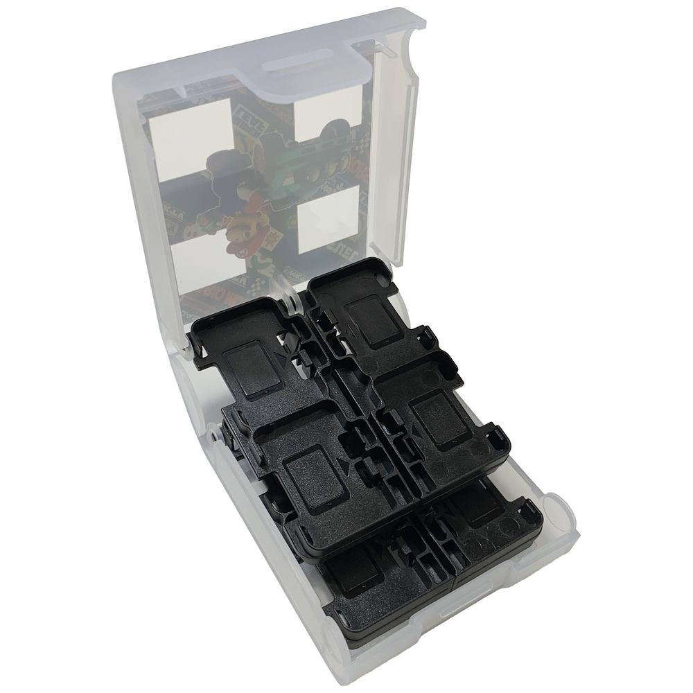 ケースが前後左右にズレることなくフタがカチッと閉められる構造で、大事なゲームカードをしっかり守る。