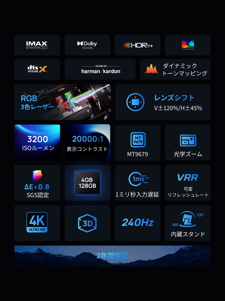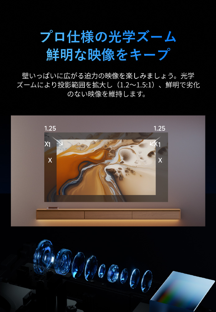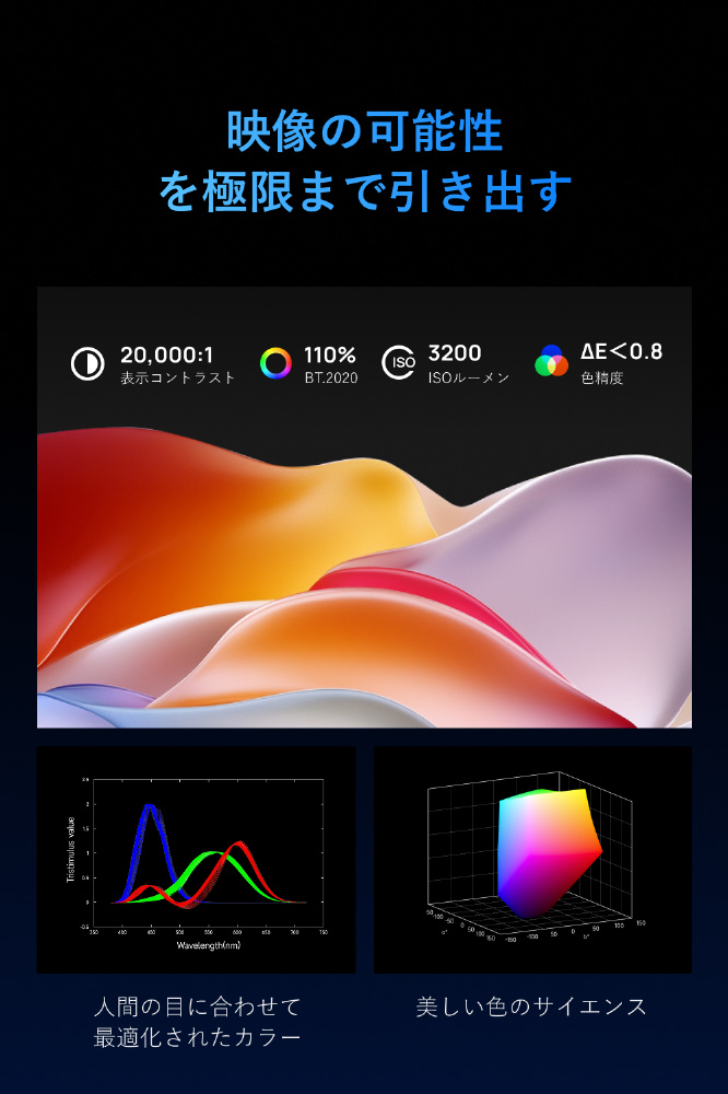 3,200 ISOルーメンが実現する「明るさ」の進化。画面は暗く沈まず、色彩は一層鮮明に。日常使いはもちろん、特別なシーンでも、クリアで生き生きとした映像体験を楽しめます。