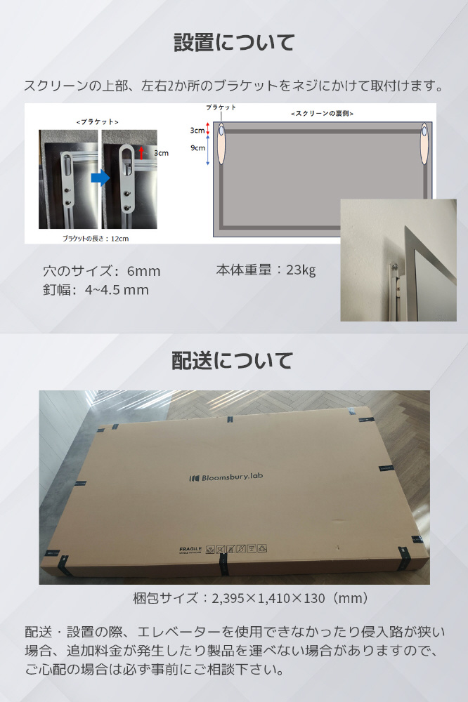 適応プロジェクター:超短焦点プロジェクター/長焦点プロジェクター(天吊り非対応)明るさ1,900ISOルーメン以上推奨