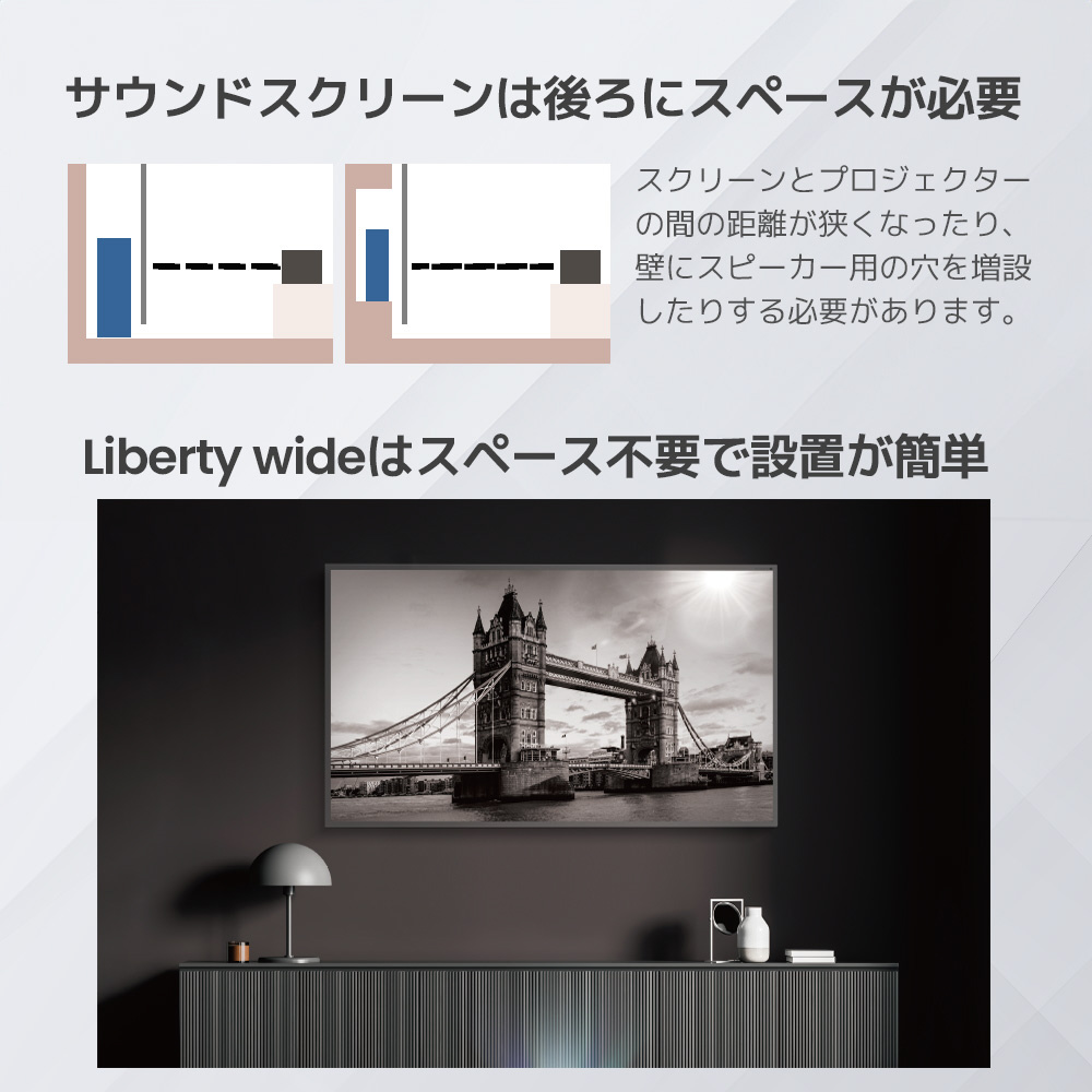 Bloomsbury Liberty Wide 2.1chスピーカー内蔵・耐外光パネル型 プロジェクタースクリーン 102インチ 超短焦点/長焦点対応 ホームシアター 壁掛け式