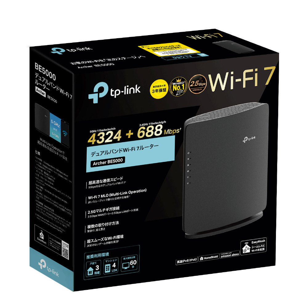 Wi-Fiルーター 4324+688Mbps Archer BE5000 [Wi-Fi 7(be) /IPv6対応] 【864】