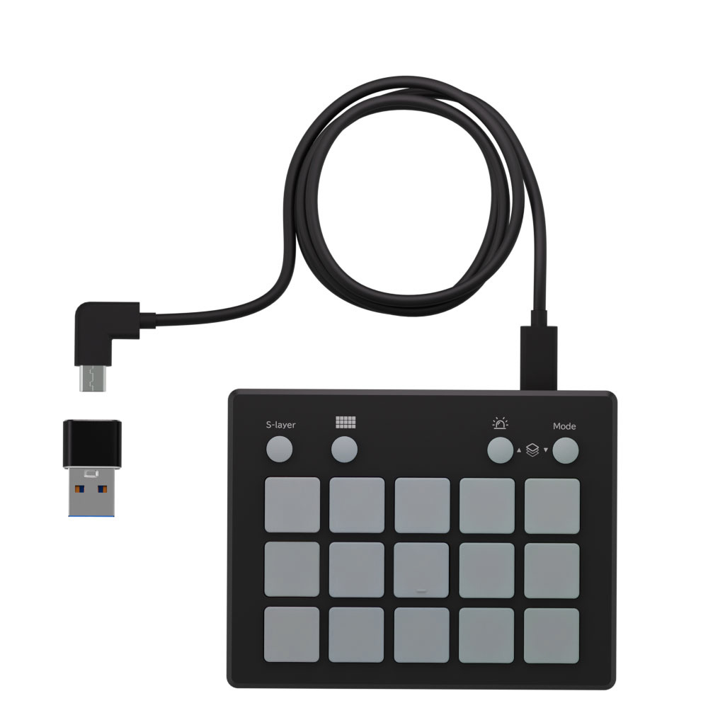 〔ショートカットキーボード〕USB-C+USB-A接続 15キープログラマブルキーパッド(Windows11対応) ブラック SD-PAD15