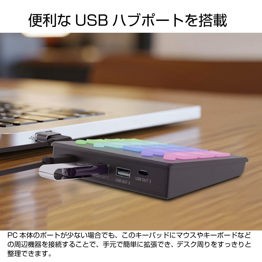 | 商品名 | 〔ショートカットキーボード〕USB-C+USB-A接続 15キープログラマブルキーパッド(Windows11対応) ブラック SD-PAD15 |