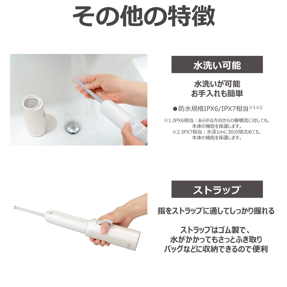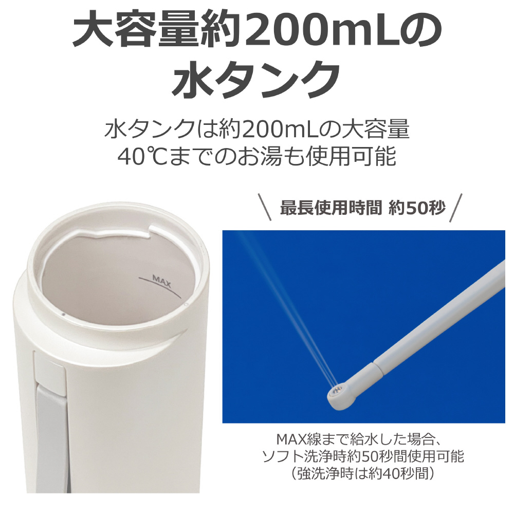 | 仕様2 | 大容量約200mlの水タンクを搭載、洗浄持続時間は最長約50秒 |