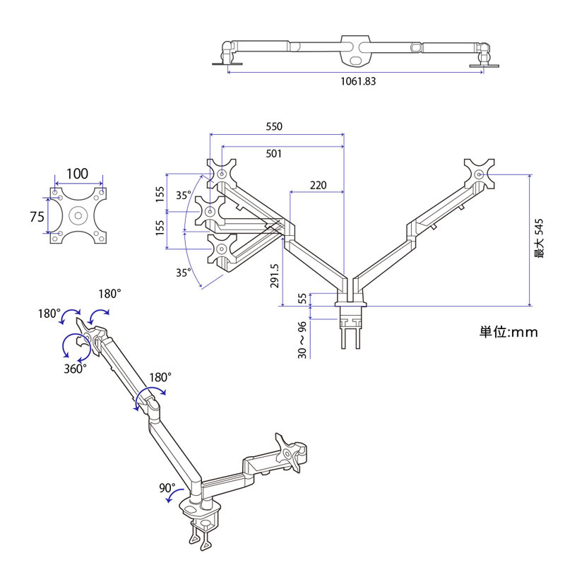 | 仕様2 | [注意事項] ※サンコー社指定のUSBケーブル以外は取り付けできない場合があります。 ※ディスプレイを取り付けていない状態の場合、アームは常に最上位に戻ろうとします。 |