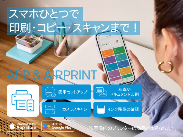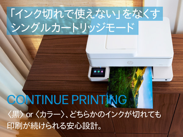 黒かカラーどちらかのインクだけで印刷可能です。突然インクが切れた時でも、印刷を続けることができます。※カラーインクで黒を再現する時は、3色混合で黒色を再現する為グレー寄りの黒になります