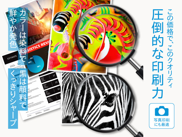 カラーは染料インクを採用しています。染料インクは発色がとても鮮やかで写真印刷に最適です。