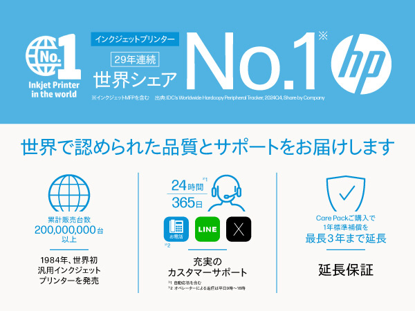 印刷頻度が低いとプリントヘッドが目詰まりを起こし、故障が起こることがあります。HPのプリントヘッド一体型インクカートリッジは、インク交換のたび、新品同様の印刷品質が蘇ります。