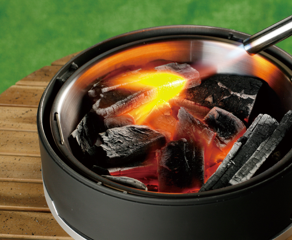 ・燃料は経済的なカセットガス式でプレヒート(予備加熱)約10秒で炎が安定し、逆さ使用可能。