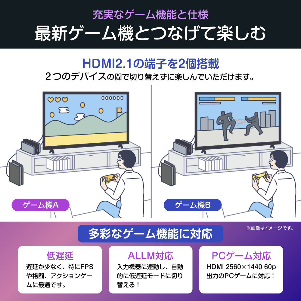| 入力端子 | HDMI2.1×2、HDMI2.0×2、USB2.0×2 |
