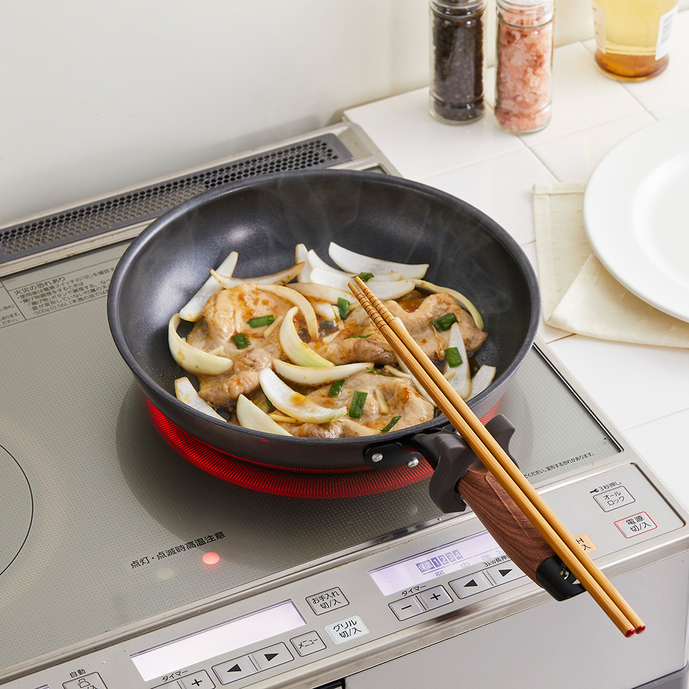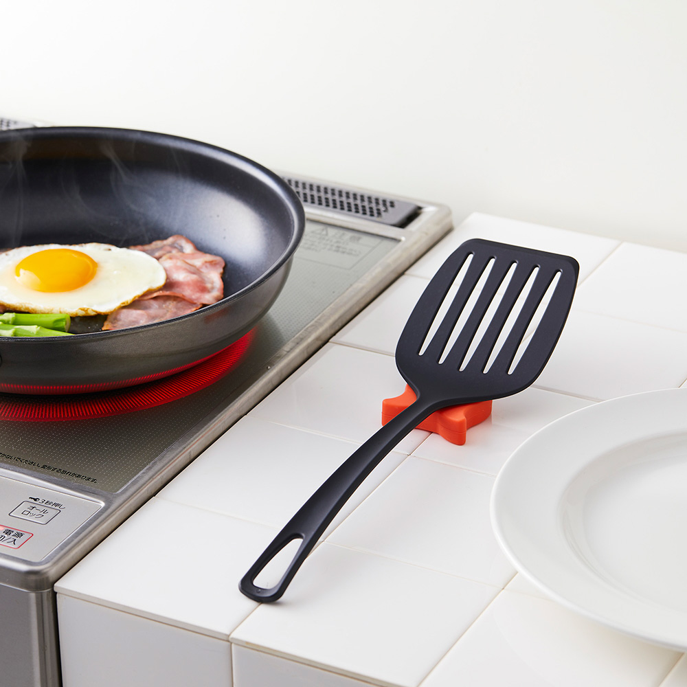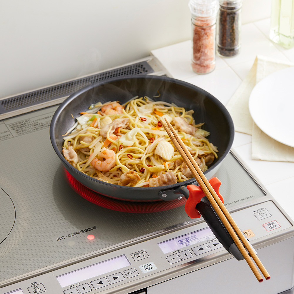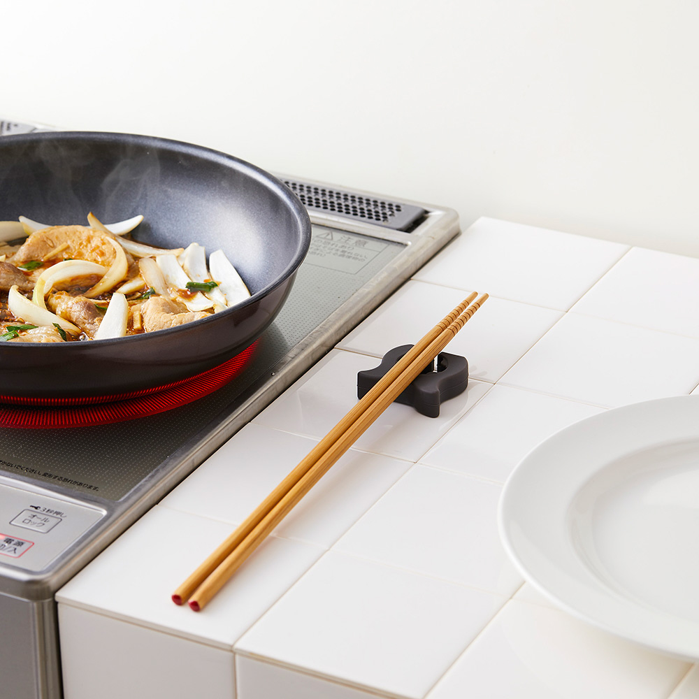 フライパンのハンドルに付けて、菜箸やターナーなどの一時置きに。