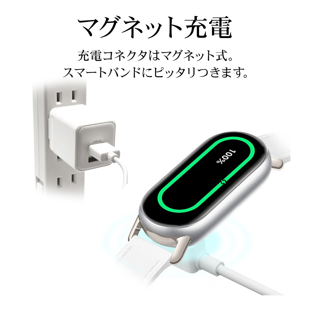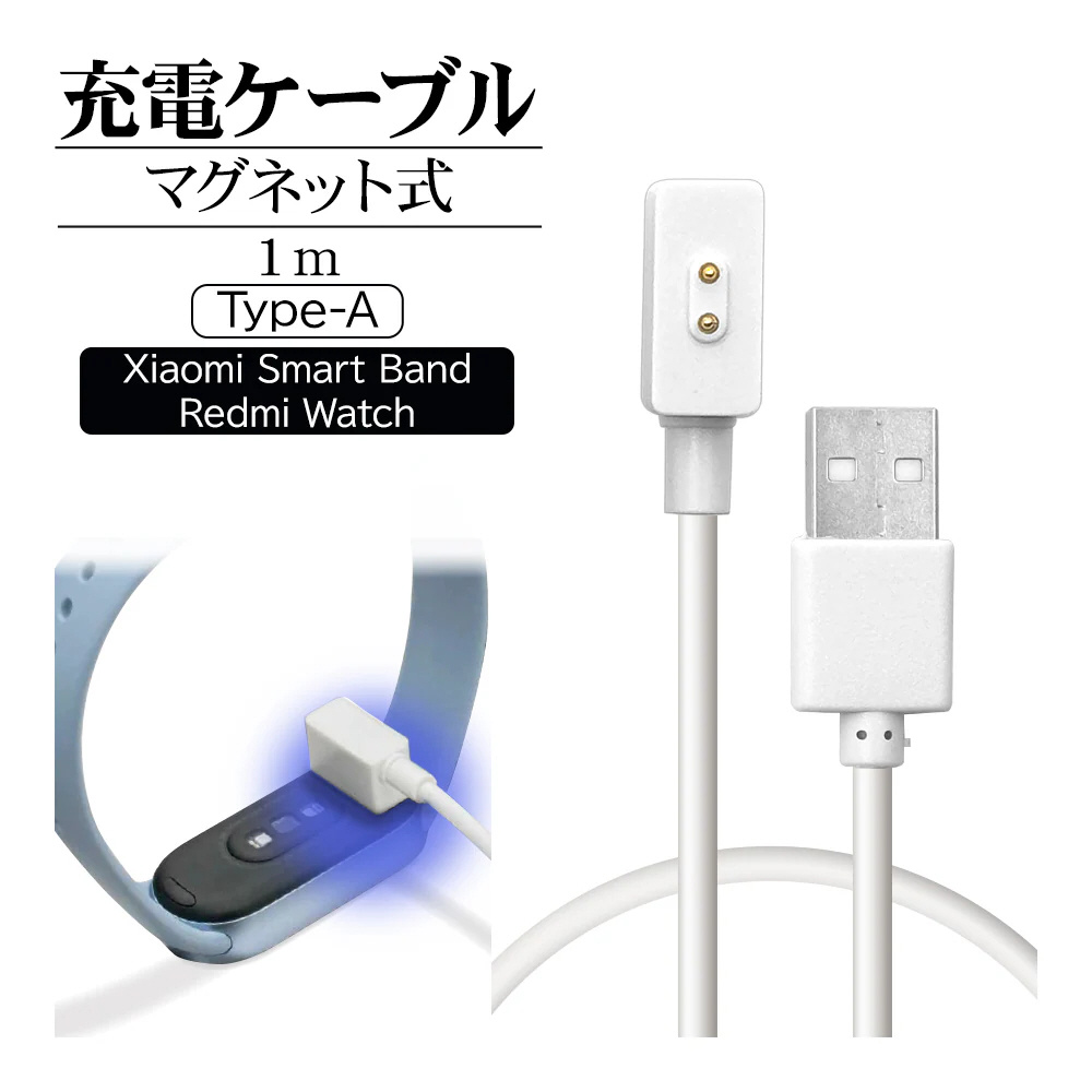 Xiaomi Smart Band Redmi Watch 充電ケーブル タイプA マグネット式充電バンド バンドを付けたまま充電可能 USB Type A to Xiaomi Smart Band ケーブル 1.0メートル 1m 100cm ホワイト R10CAAXB01WH