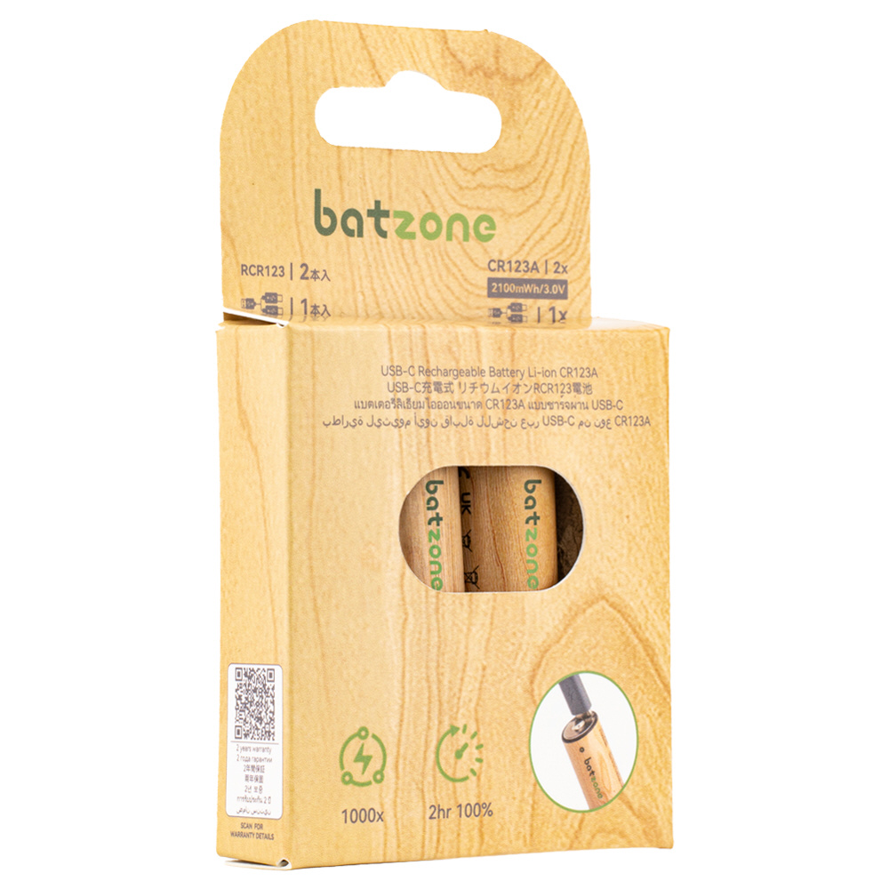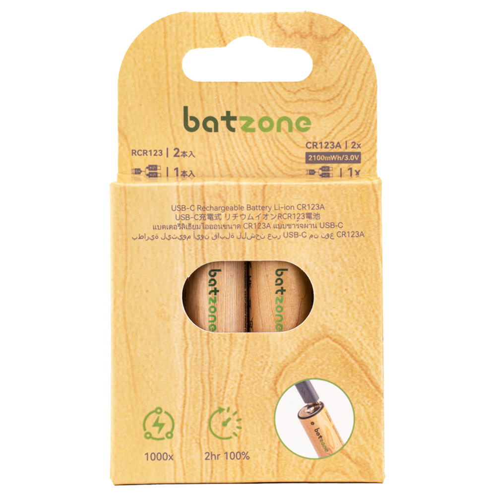 batzone リチウムイオン充電池 CR123 Type-Cケーブル付 P2-LICR123A-2100C-2 木目 [2本]