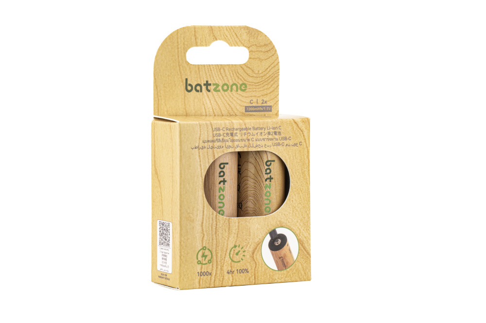batzone リチウムイオン充電池 単2(2本入り) Type-Cケーブル付 P2-LIC-7400C-2