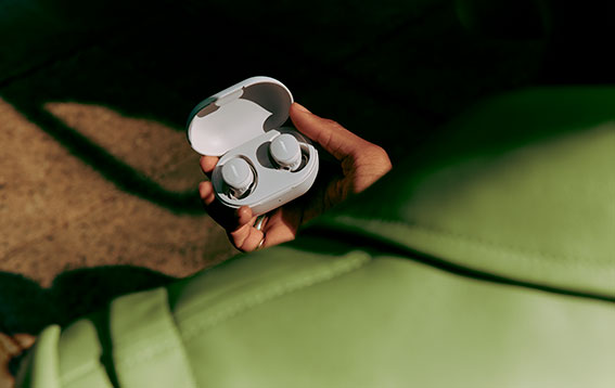 水滴や水しぶきにも安心な、IPX4規格準拠。さらに、1日のあらゆる瞬間を彩る最長8.5時間*の長寿命バッテリー。付属の充電ケースを使用すると、2.5回分の充電をワイヤレスで充電可能。