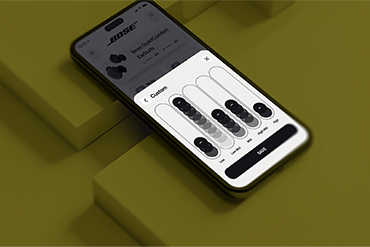 Bose QCEアプリで、サウンドパーソナライズをグレードアップ。5バンドの調整可能なイコライザー設定で、低音、中音、高音を自由に調整できます。ANC設定は、クワイエット、アウェア、オフに切り替え可能。