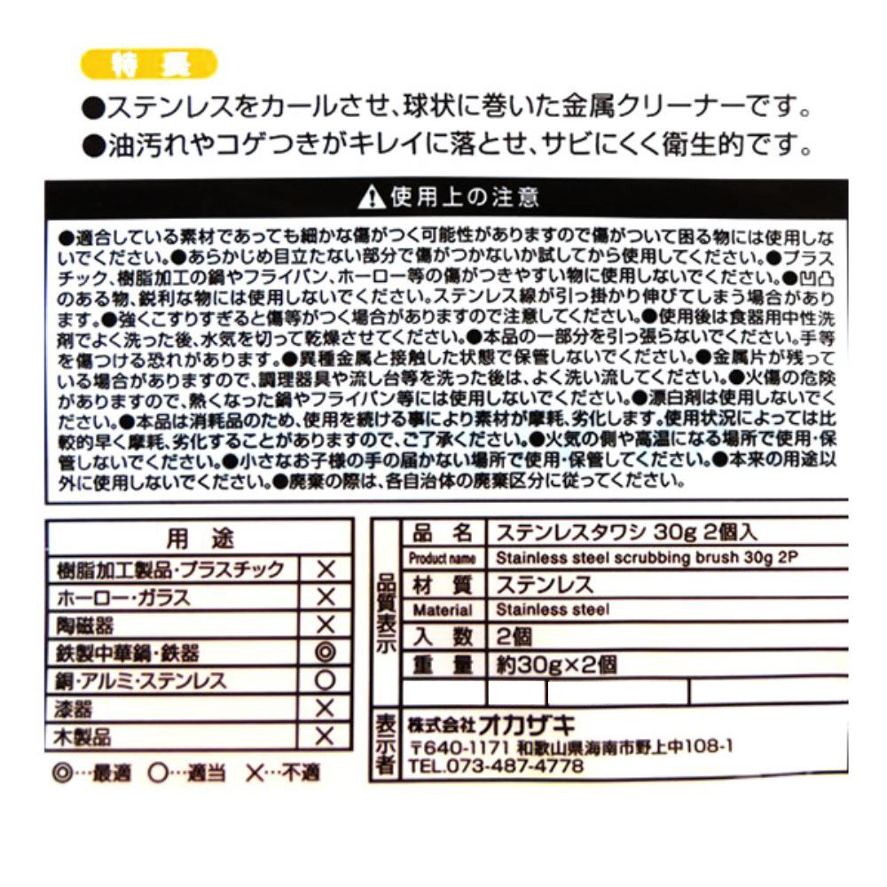 | 商品名 | ステンレスたわし 金属タワシ 30g 2個入 420064 |