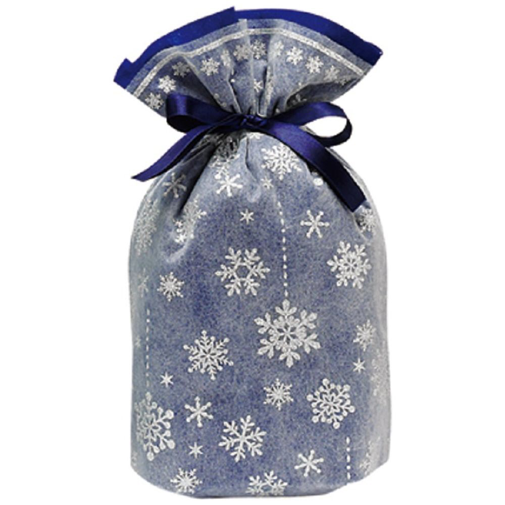 シルバーの雪の結晶が印象的なギフトバッグ。不織布でできています。